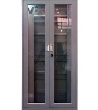 Lemari besi untuk arsip pintu ayun kaca, dilengkapi dengan penguncian yang aman untuk dokumen Anda. Didalam nya terdapat rak-rak yang mampu menahan beban odner dokumen Anda.